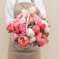 Корзина пионов и роз