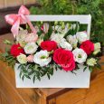 Эустомы и розы в коробке