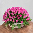 8 розовых хризантем в корзине
