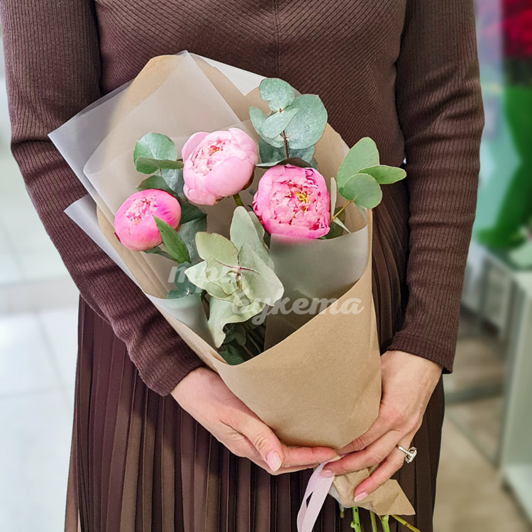 Букет из 3 розовых пионов