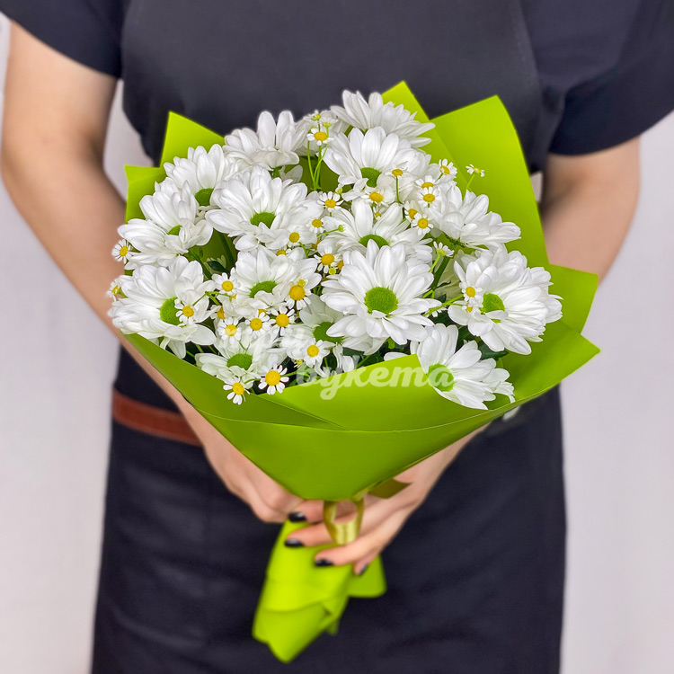 Букет из кустовых хризантем и ромашек