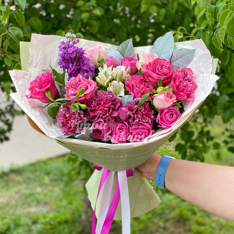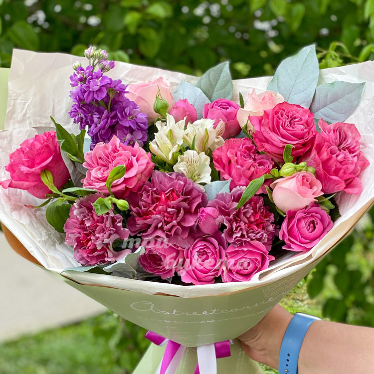 Букет из пышных роз и гвоздик