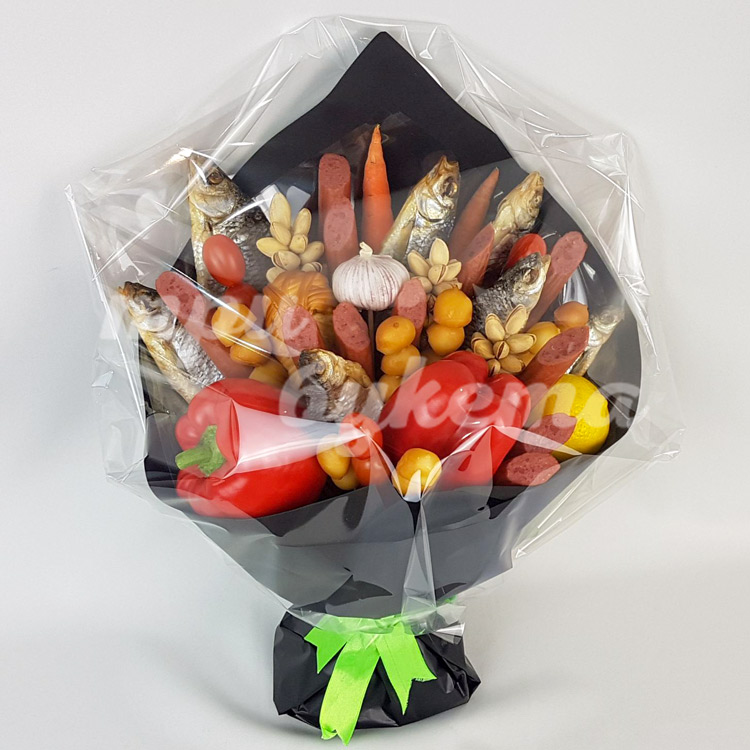 Букет из вяленой рыбы и колбасы