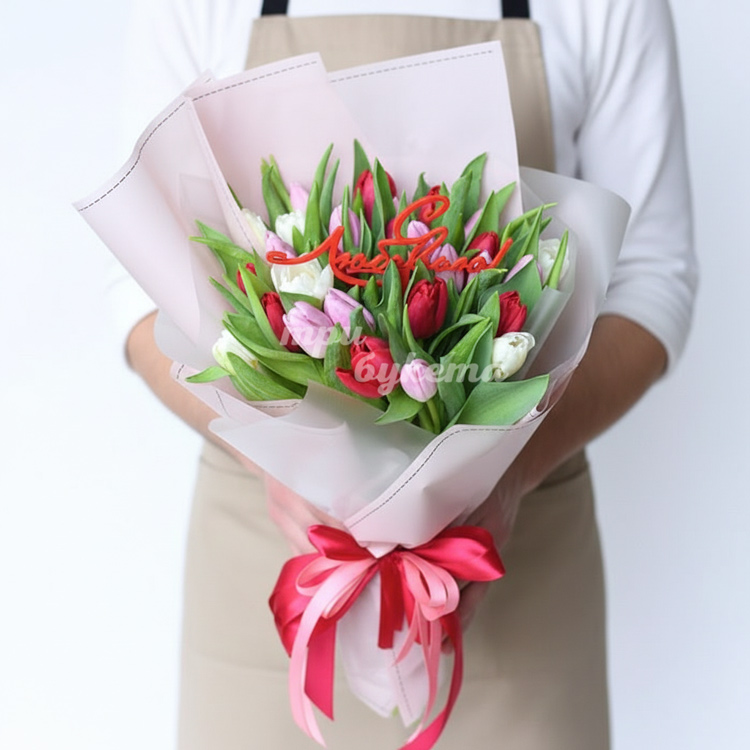 Букет на 14 февраля из тюльпанов
