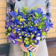 Букет желтых роз с ирисами