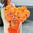 Коробка белых французских роз с орхидеями