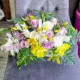 Корзина белых и розовых тюльпанов