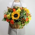 Корзина кустовых роз с эвкалиптом