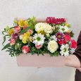 Ящик белых эустом и красных роз